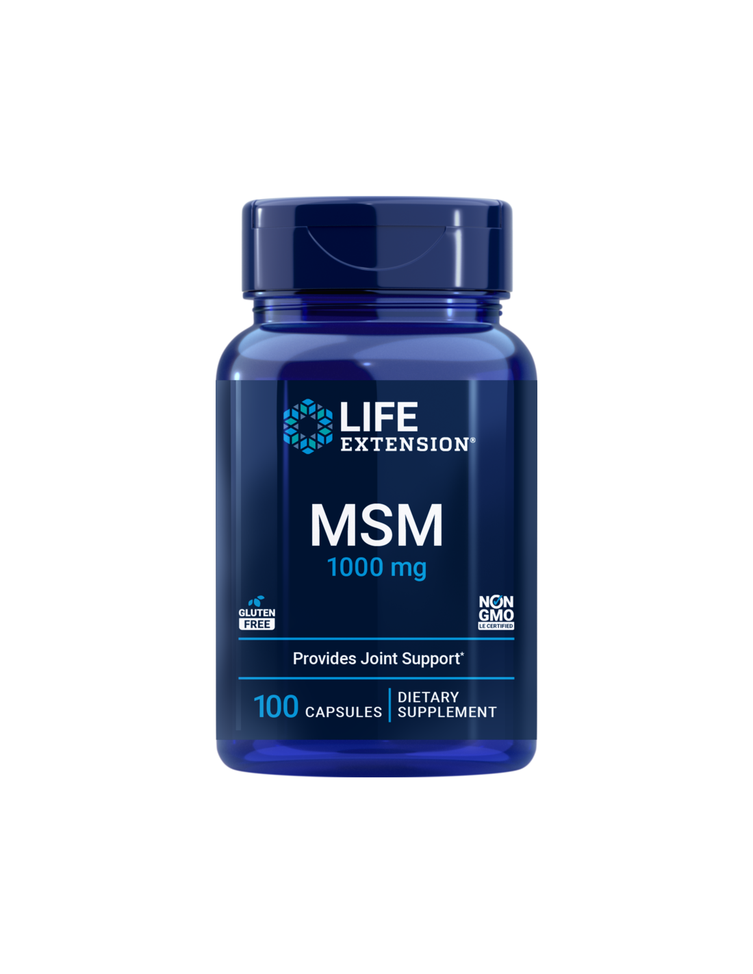 Life Extension® MSM 1000 mg – 100 Capsules (EU Formula) delivers 1000 mg of methylsulfonylmethane (MSM) per capsule, with a daily serving of three capsules totaling 3000 mg. This high‑potency, non‑GMO and gluten‑free supplement supports joint comfort, mobility, connective tissue structure (including skin, hair, nails), muscle recovery, and helps inhibit oxidative stress.*