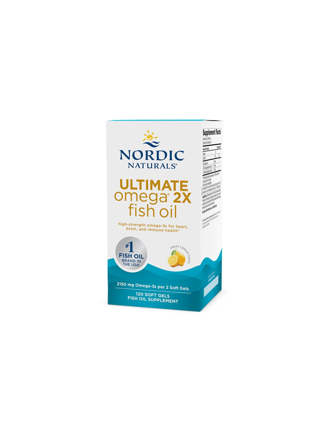 Nordic Naturals Ultimate Omega® 2X is een zeer geconcentreerd omega-3-supplement met 2150 mg totale omega-3-vetzuren per portie, waaronder 1125 mg EPA en 875 mg DHA. Deze ultrazuivere formule is afkomstig van diepzeevisolie in zijn natuurlijke triglyceridevorm, wat zorgt voor een superieure opname en duurzaamheid. Ideaal voor wie een hogere inname van omega-3-vetzuren wenst.