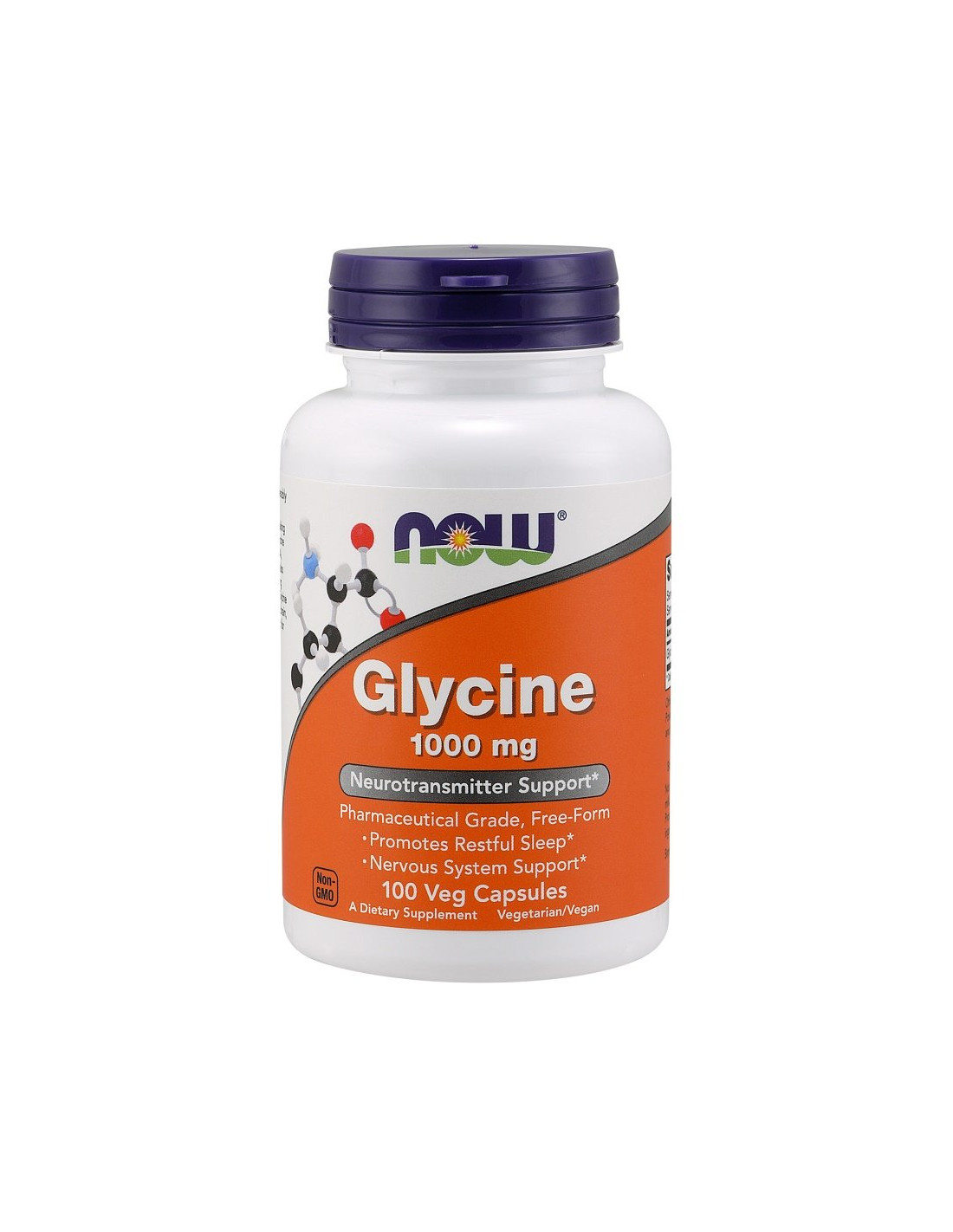 NOW® Glycine 1000 mg plantaardige capsules bevatten vrije glycine in plantaardige capsules. Elke portie van 3 capsules bevat 3000 mg glycine. Geproduceerd zonder veel voorkomende allergenen en geproduceerd in een GMP-faciliteit. Natuurlijke kleurvariaties kunnen voorkomen.