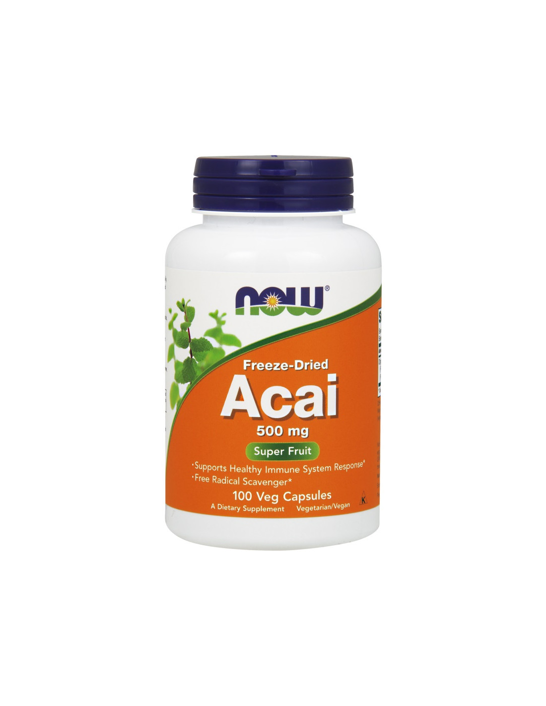NOW® Acai 500 mg plantaardige capsules bevatten 1000 mg biologische gevriesdroogde açaibes (Euterpe oleracea) per portie van 2 capsules. Dit supplement bevat zowel de schil als het vruchtvlees, geconserveerd door vriesdrogen voor optimale kwaliteit. Geproduceerd zonder veel voorkomende allergenen en geschikt voor vegetariërs.
