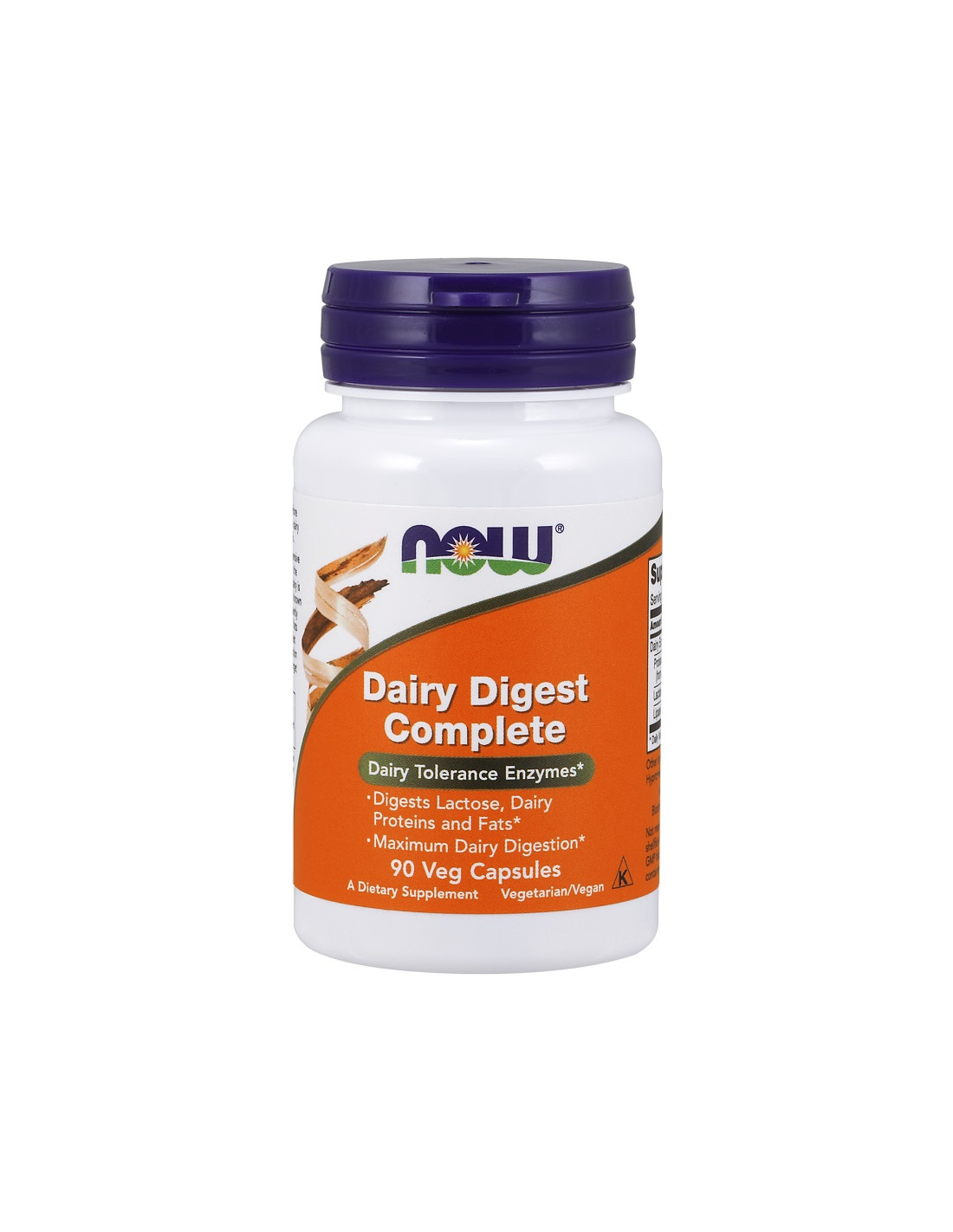 NOW® Dairy Digest Complete combineert protease-, lactase- en lipase-enzymen in één vegetarische capsule. Elke portie biedt specifieke activiteitsniveaus voor betrouwbaar gebruik, geproduceerd volgens GMP-kwaliteitsnormen.