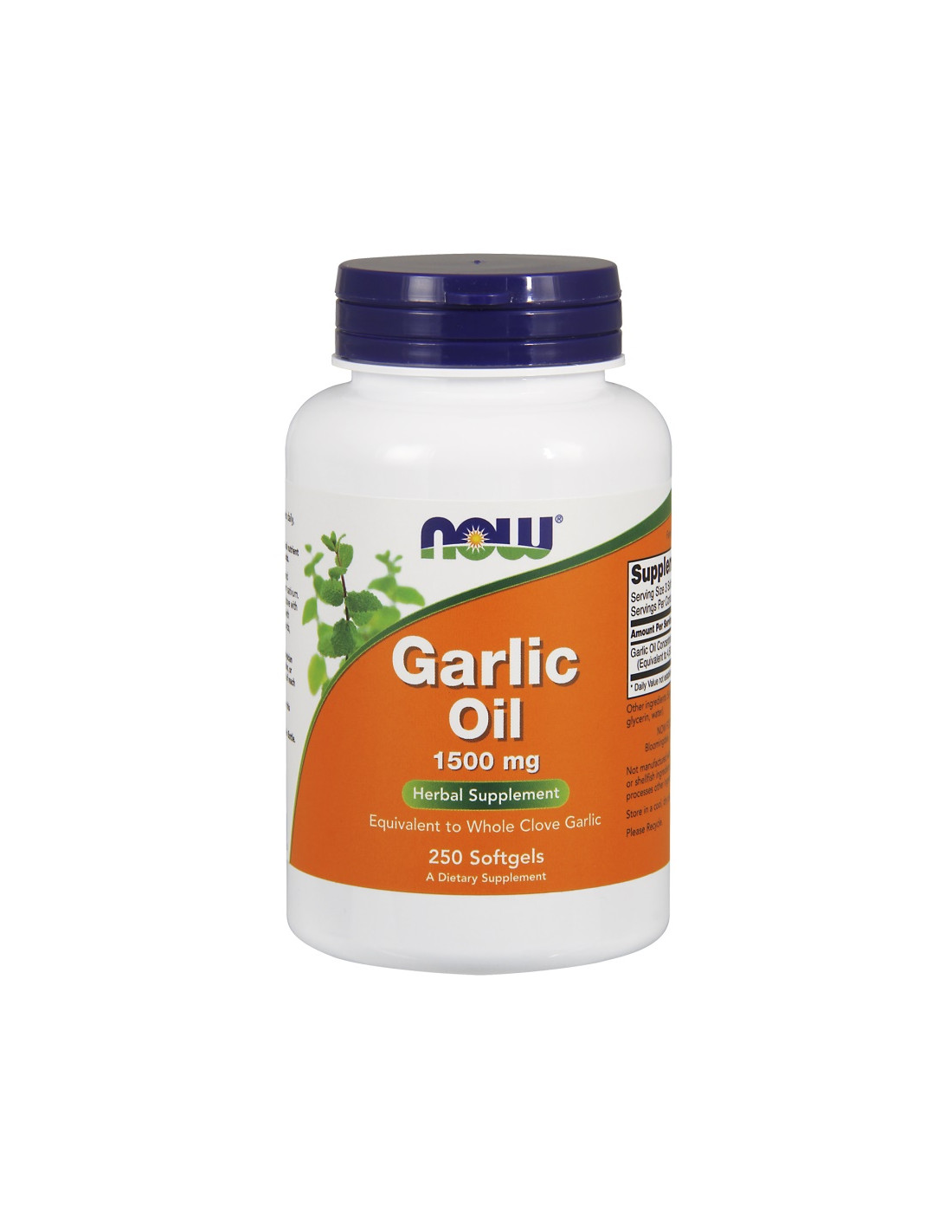 NOW® Knoflookolie 1500 mg Softgels bevatten knoflookolieconcentraat (Allium sativum), equivalent aan 4500 mg hele knoflookteentjes per portie van 3 softgels. Dit supplement is geproduceerd volgens GMP-kwaliteitsnormen en bevat knoflook in een handige softgelvorm.