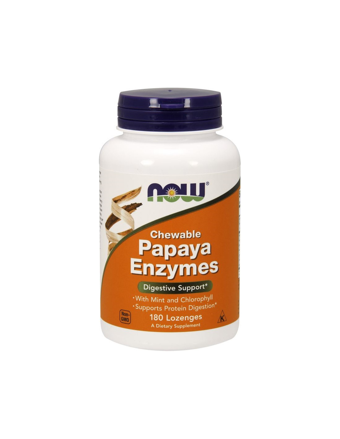 NOW® Papaya Enzyme Zuigtabletten bevatten een multi-enzymenmix met papaïne (uit papaja), bromelaïne (uit ananas), protease, lipase, cellulase en alfa-amylase, aangevuld met papajapoeder. De zuigtabletten hebben een pepermuntsmaak en zijn samengesteld zonder veelvoorkomende allergenen.