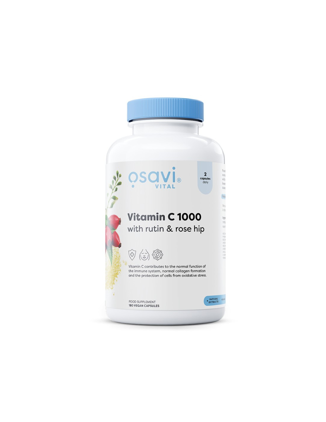 Osavi's geavanceerde vitamine C-complex combineert calcium-L-ascorbaat met natuurlijke extracten van rozenbottel (Rosa canina) en rutine van Sophora japonica, ter ondersteuning van een evenwichtige dagelijkse inname van deze essentiële voedingsstof. De formule is veganistisch en speciaal ontwikkeld voor een gevoelige maag.