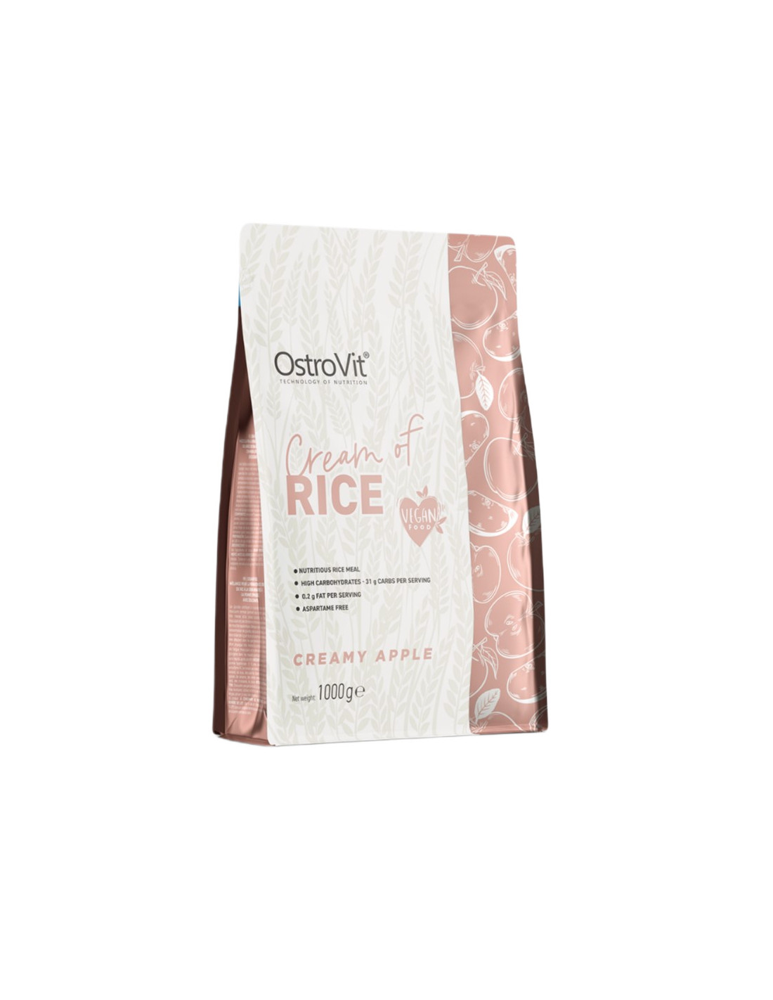 OstroVit Cream of Rice is een voedingsproduct dat voornamelijk bestaat uit rijstmeel, aangevuld met gevriesdroogde appel, aroma en zoetstoffen. De fijn gemalen textuur zorgt voor een snelle en gemakkelijke bereiding, waardoor het geschikt is voor gebruik in dagelijkse maaltijden.
