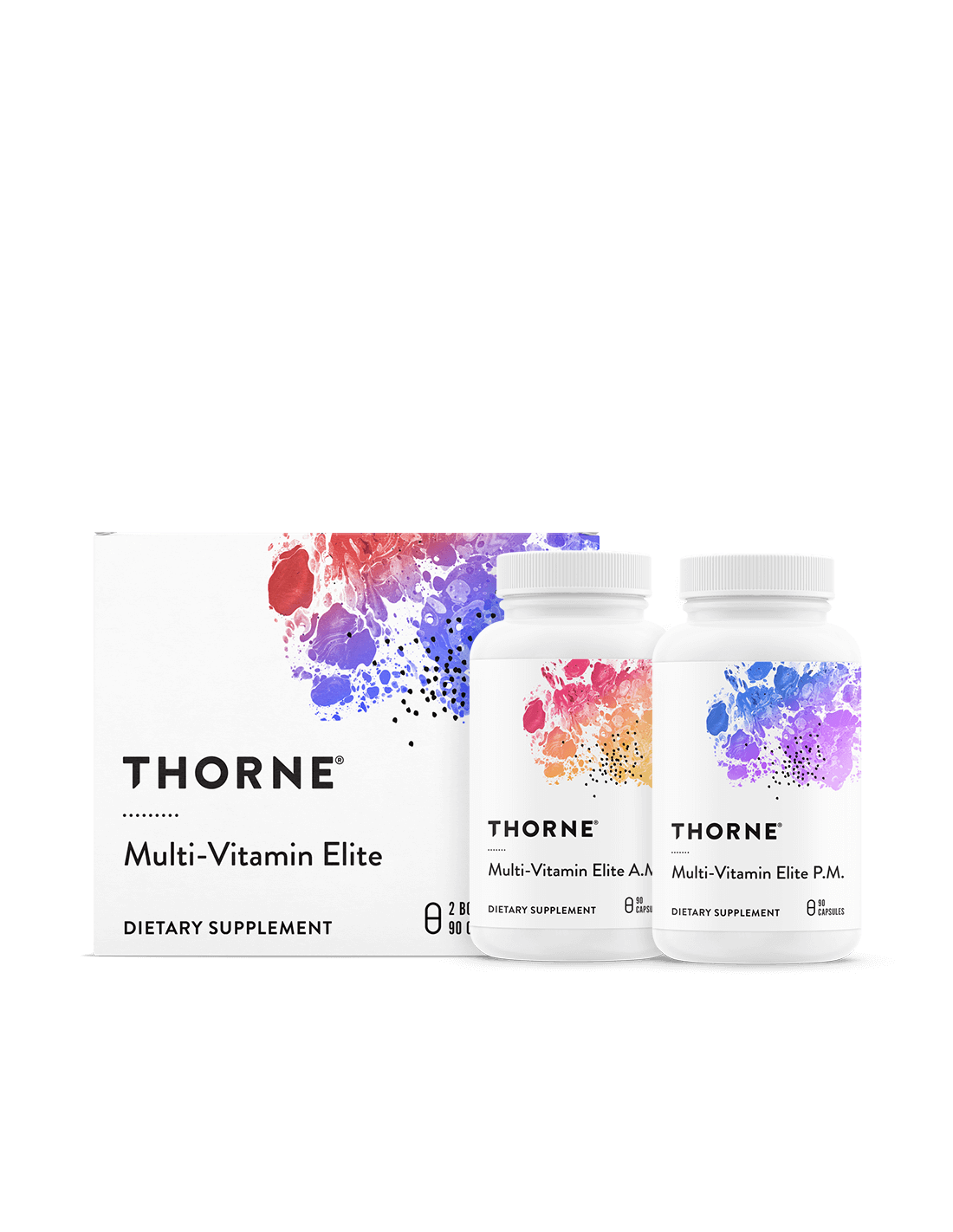 Thorne's Multi-Vitamin Elite provides active individuals who have high-performance nutritional regimens with essential nutrients in two complementary formulas.